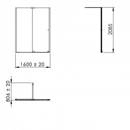Height : 2.08 m (standard height for shower door)