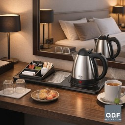 Kettle model 75058 01 on black tray with integrated socket