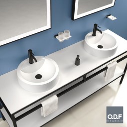 ODF ofrece un mueble para lavabo totalmente equipada con un diseño contemporáneo y minimalista. Diseñado para un uso intensivo, resistirá todas las demandas de la vida cotidiana tanto para una habitación de hotel como para el baño de una casa.