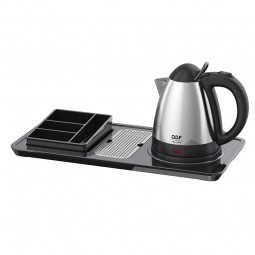 Hervidor modelo 7508 01 sobre base integrado en una bandeja de cortesía negra.