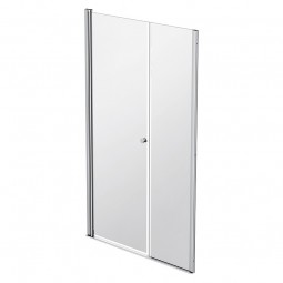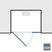 La façade est composée d’une porte pivotante et d’un panneau fixe. Ce type de pare-douche est prévu pour donner un maximum d’ouverture dans les espaces réduits.
