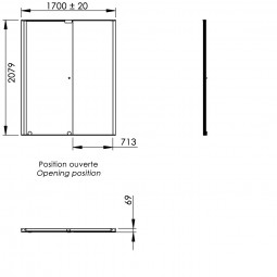 Dimensions (mm) : 1700 x 69 x 2079