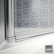Душевой фасад состоит из двух распашных дверей. Подобная конструкция идеальна для установки в небольших помещениях. Дверцы могут открываться как внутрь, так и наружу. Магнитный уплотнитель по вертикальной стороне панелей обеспечивает полную герметичность и комфорт в эксплуатации.