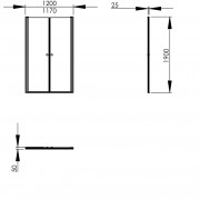 Стандартная высота душевой двери - 190 см. Ширина варьируется с шагом 5 см - от 67 до 120 см. Для компенсации нескольких сантиметров, предусмотрены расширители - 1 см.
